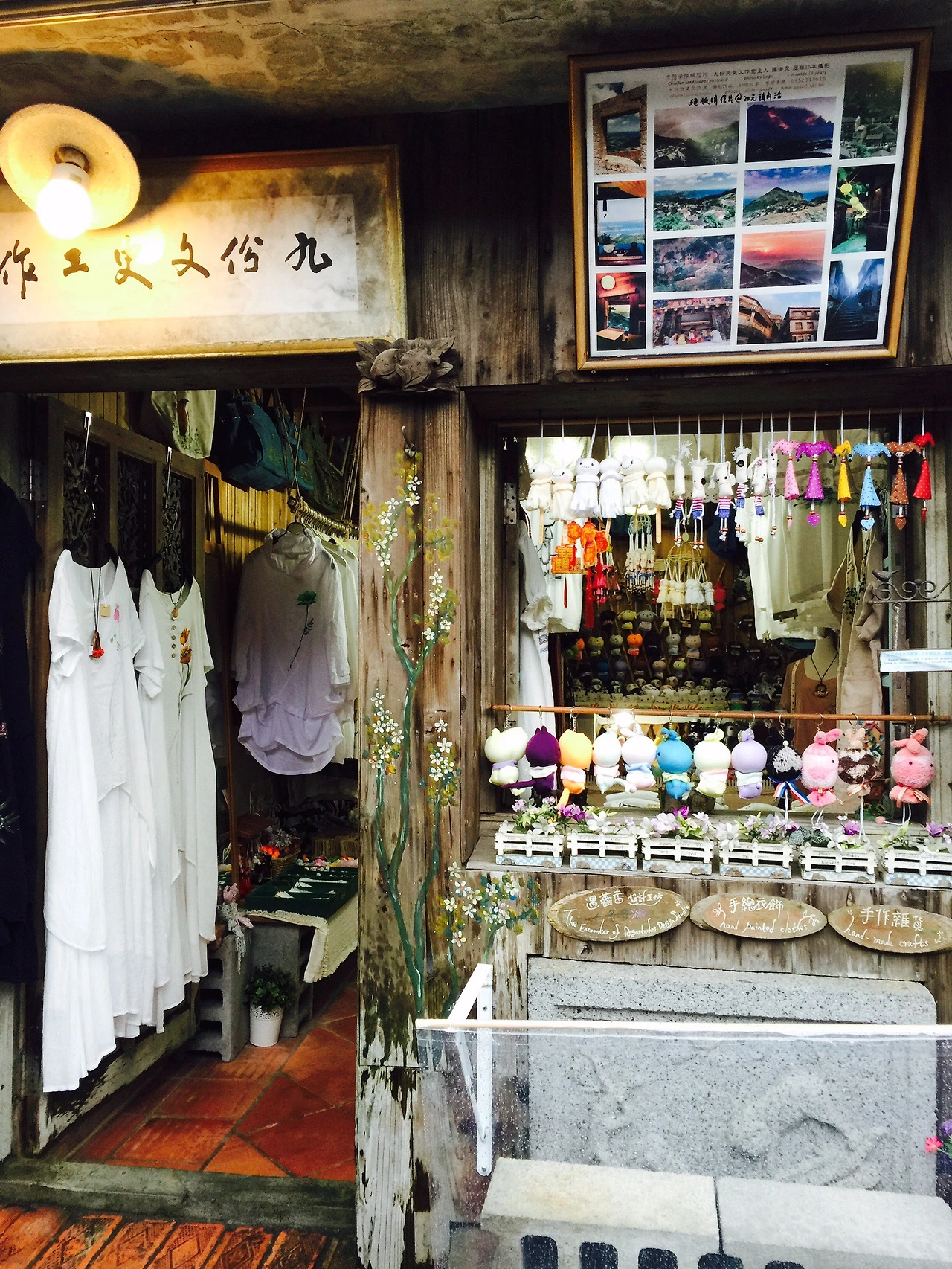 일제강점기 때 금이 발견된다고 해서 호황을 누렸다가 2차 세계대전(1939-1545) 때는 포로수용소로 운영되었고, 그 후 타이완 영화 '비정성시(1990년)'의 배경으로 등장해 관광명소도 거듭난 곳이다. 굉장히 가파른 산등성이 곳곳에 집이 자리하고 있고 지우펀에 가면 항상 방문하게 되는 시장길을 따라 먹거리와 기념품 가게가 자리고 하고 있다. 지우펀은 일본과 대만이 섞인 형태의 주거와 문화가 형성되어 있다고 한다. 그래서인지 일본 스타일의 기념품도 많이 보이고 주거 형태도 일본에서 봤을 법한 구조가 많이 눈에 띈다.