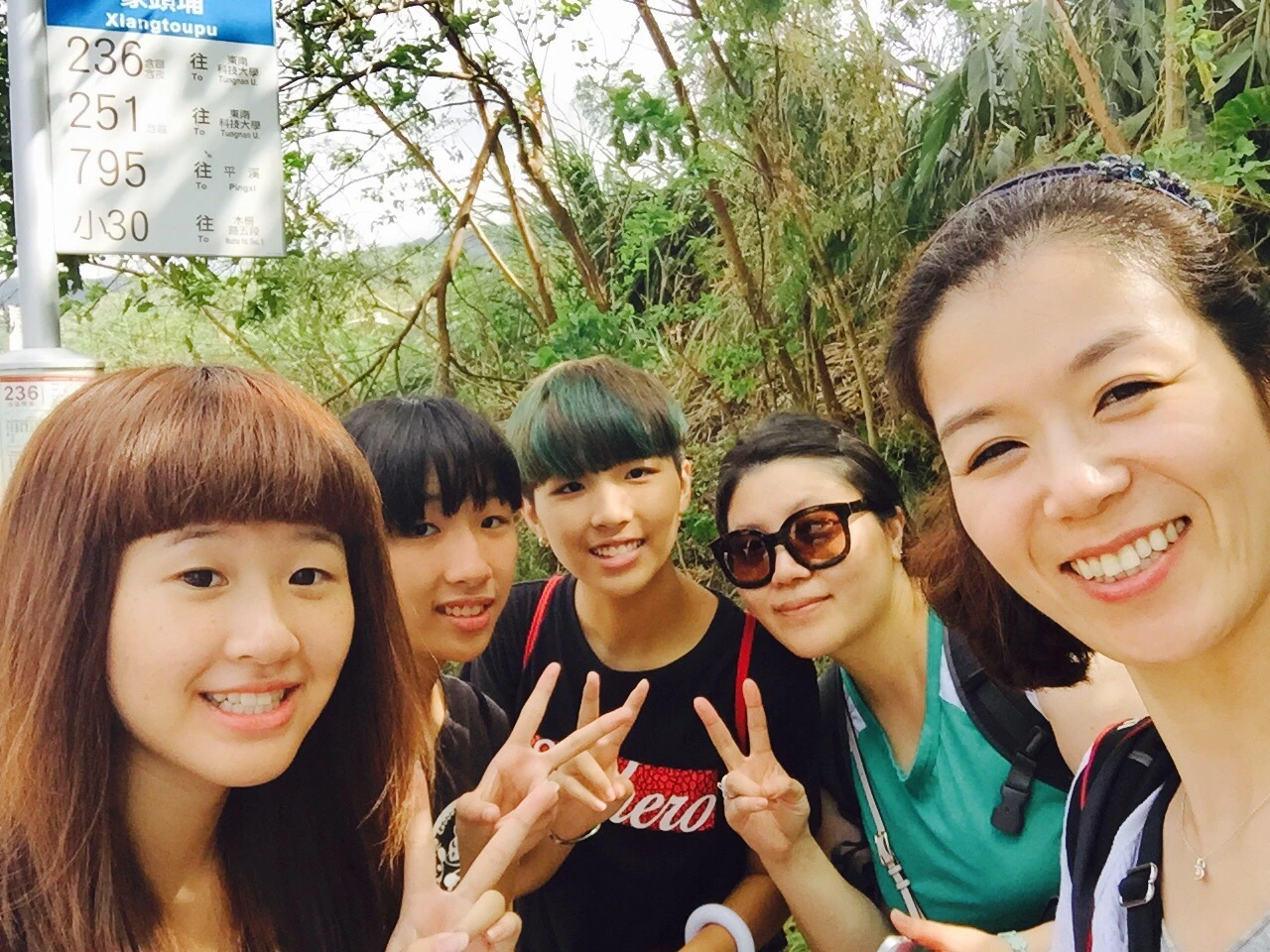 구글맵과 기타 앱을 총동원해 버스 넘버를 찾았다. 정류장 검색을 해보니 제법 거리가 있었다. 우선 방향을 잡고 고 한 15분 정도 걸었을까. 정말 버스 정류장(Xiangtoupu)이 있지만 그냥 지나칠 것 같은 아주 작은 곳이었다. 버스 정류장에서 버스 번호를 보며 핑시를 찾고 있었는데. 이때 등장한 현지 아이들. 인근 지역에 사는 중고등학생들 무리였다.