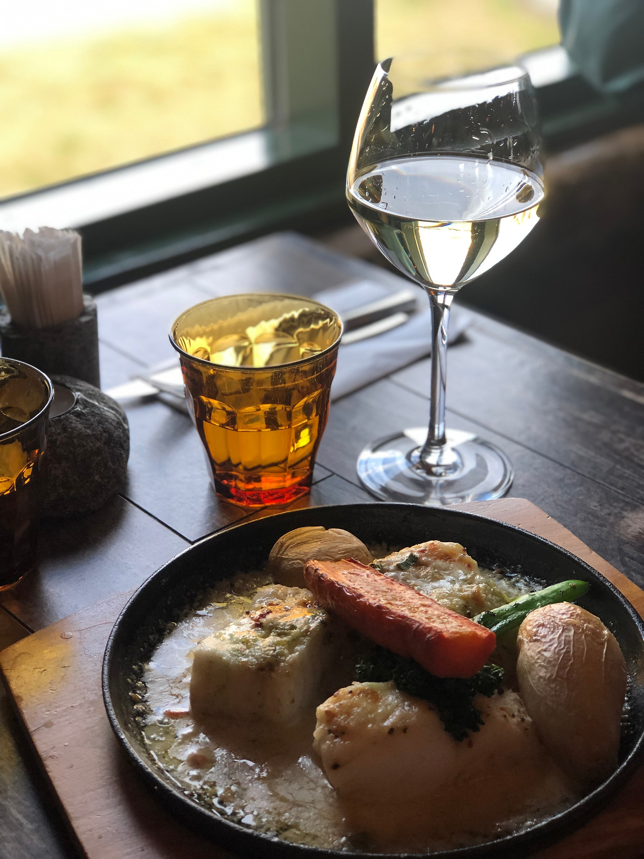 아, 생각해보니 오늘이 그 날이구나. 유일하게 콕 찝어 가고자 했던 그 디너의 날. '아이슬란드 맛집'이라고 치면 바로 나오는 대부분의 여행자들이 한 번쯤은 가서 포식했다던 그 곳이다. 어쩌면 우리는 이 날 눈치보지 않고 마음껏 먹기 위해 서울에서부터 한식보부상을 자처했는지도 모른다. 랑구스틴은 작은 바닷가재인데, 세계의 모든 진미가 집약되어있는 우리나라에서도 보기가 아주 어렵고, 아이슬란드에서 그 진가를 알 수 있다길래 이것만큼은 설레지 않을 수 없었다. 역시나 우리가 시킨것은 당연히 랑구스틴과 오늘의 요리라던 대구. 소고기와 와인까지 야무졌다.