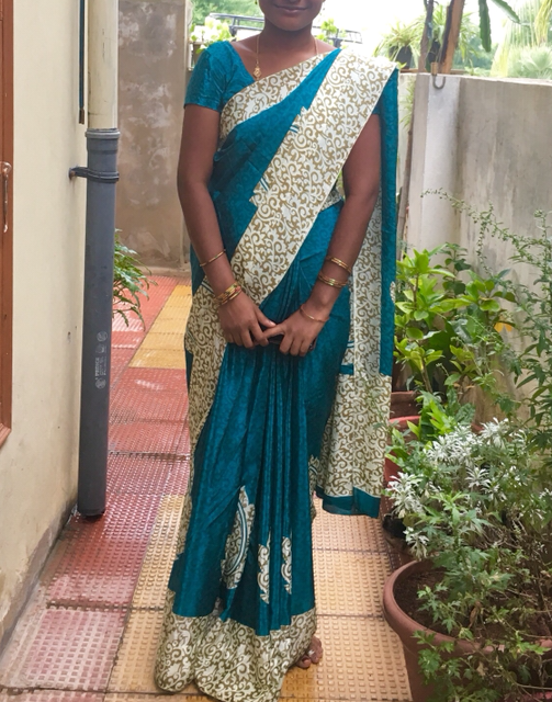 나는 늘 꾸르띠를 입었다. 사리는 입고 벗는 과정부터 입고 있는 동안에도 세심하게 신경 써야 하는 데다가 복부가 드러나기도 해서 일상의 허드렛일엔 어울리지 않는 옷이었다. 어쩌다 한 번 기념으로 입어 본 정도다. 그럼에도 몇 번 사리 천을 사러 낯선 가게를 기웃거린 적이 있었다. 같이 일하던 스태프들에게 선물하기 가장 무난한 것이 사리였다. 동네마다 재봉틀 놓인 가게들이 있어서, 천만 사서 선물하면 그 천 색깔에 맞춰 사리 천 안에 입는 상의를 자기 사이즈대로 제작할 수 있다. 그러니 선물하는 입장에서 제일 선택하기 쉬운 아이템이자 받는 입장에서도 반기는 아이템이었다.