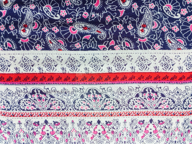 가정 방문을 다니며 다양한 천을 무수히 보았는데, 일상의 그 모든 천이 아름다웠다. 서랍장에 곱게 개켜 놓은 옷을 가리기 위해 걸어 둔 사리 천부터 침대 시트와 베갯잇도 죄다 즐거운 무늬로 덮여 있었으며, 방 문과 창문마다 걸려 있는 얇은 커튼도 바람 불 때마다 산들산들 제 고운 면만을 보여주었다. 그러나 일상에서 가장 가까운 직물은 역시나 옷이었다. 매일 비슷비슷한 단조로운 일상에서 색색깔의 옷을 뒤적거리며 고르는 건 은근한 즐거움이었으며, 한 번씩 옷가게에 가서 맘에 드는 꾸르띠 하나씩 사 들고 나오며 스트레스를 풀기도 했다.