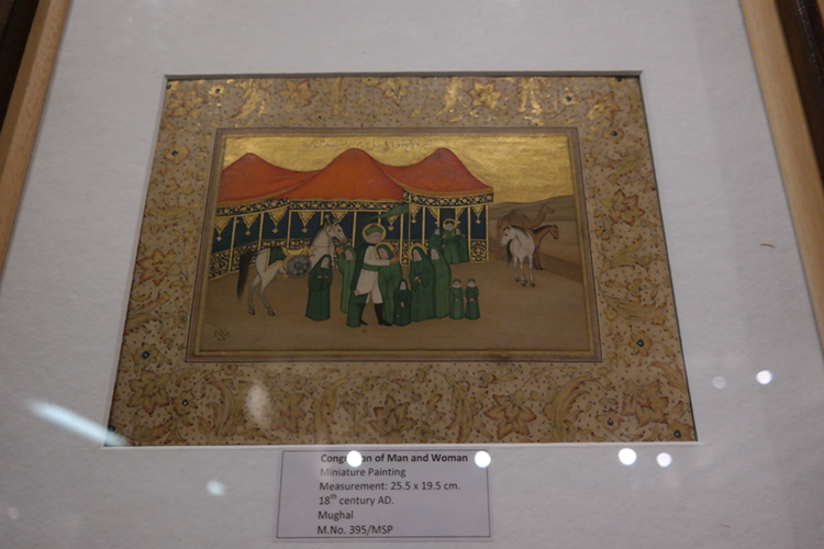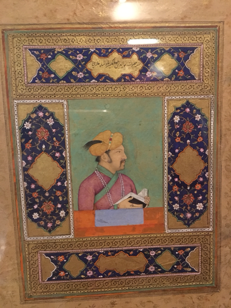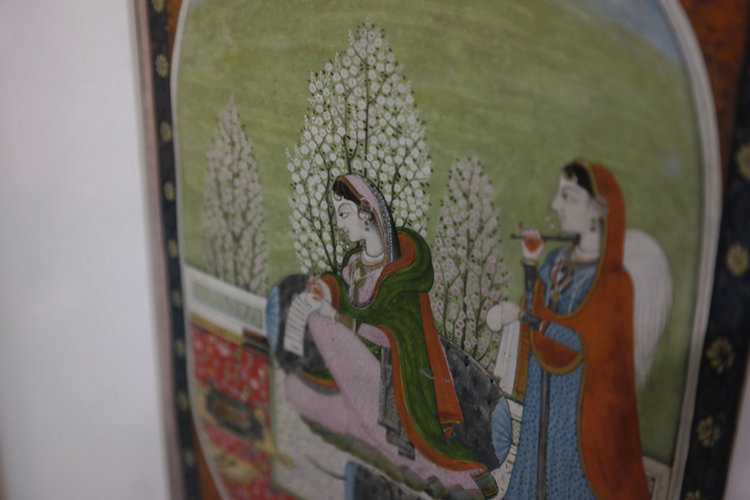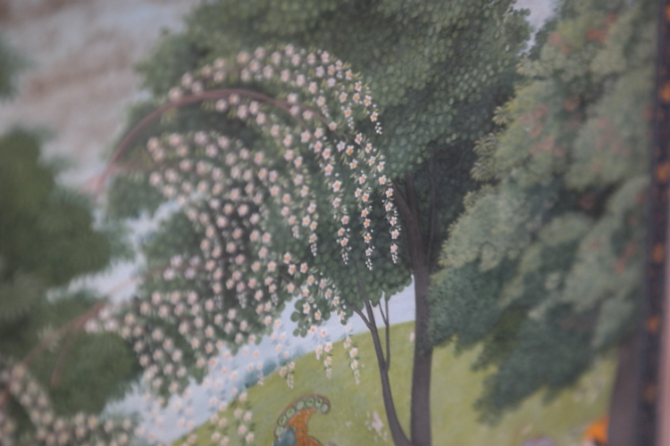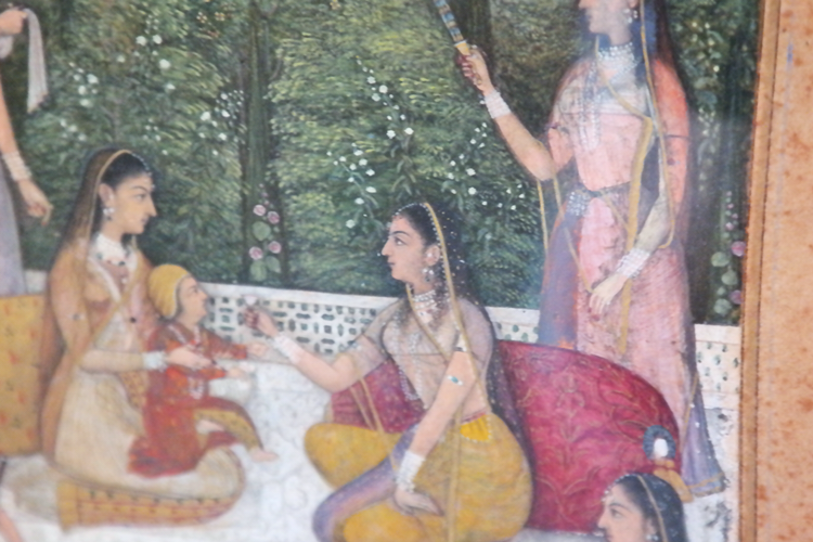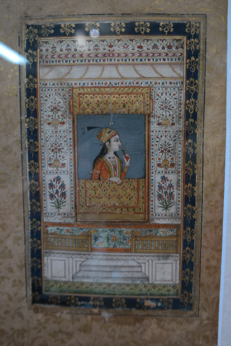 그보다 기억에 깊이 남은 건 세밀화다. <내 이름은 빨강>에도 많이 묘사되는 바로 그 그림이다. 무굴 왕조는 사실 외래 왕조이다 보니, 이런 세밀화도 인도 전통 예술이라기보다는 이슬람 왕조의 예술이라 할 수 있다. 하지만 고운 직물을 생산하고 화려한 장식을 좋아하는 인도 사람들답게, 자기 왕조의 인물들부터 일상의 인물들, 더 너머 힌두 신화 속 인물들까지 섬세한 붓끝으로 그려냈다. 옷 위의 꽃무늬와 나뭇잎 하나까지 대충 뭉갠 곳이 하나도 없다. 금박 장식은 금색 물감으로, 진주 장식은 흰 물감을 콕콕 찍어서 질감을 살려 그려냈다. 보석보다 빛나는 그림들이었다.