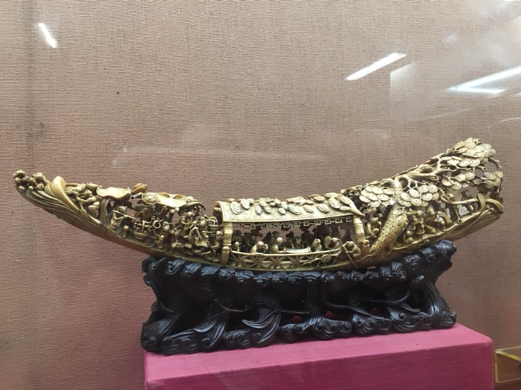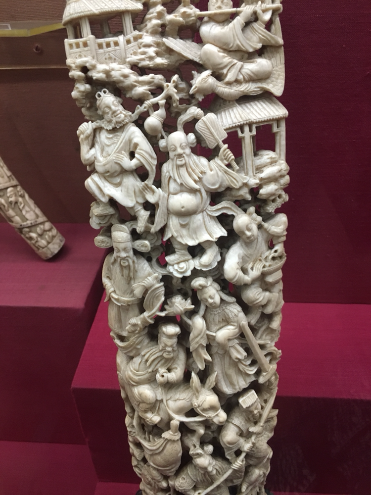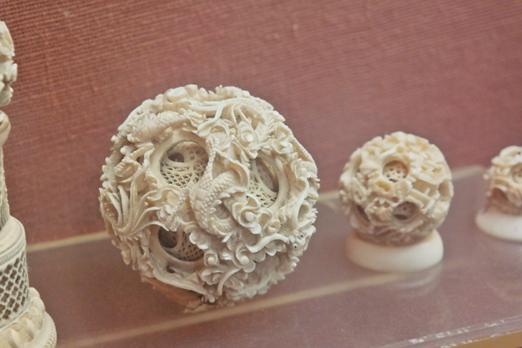 말로만 들어본 상아 공예품도 있었다. 상아 하나를 들고 어떻게 저렇게 깎아낼 수 있을까? 공 안의 공 안의 공 안의 공...으로 만들어냈는데 그 장식이란 것이 참 화려하면서도 일정하여 절로 탄성을 자아내게 만든다. 장인의 일평생을 바쳐야 만들 수 있을 것만 같은 그런 작품을 이렇게 순식간에 스쳐가는 건 예의가 아닐 듯해 한참을 바라보았다. 작살에 찔린 코끼리의 고통스러운 얼굴이나 술 한 잔 걸쳐 불콰해진 노인의 미소 같은 감정 표현조차 생생하여 더욱 놀라웠다.