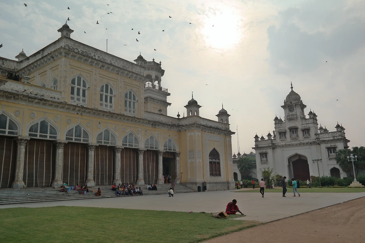 쵸마할라 궁Chowmahalla Palace은 우리에게 익숙한 용어로 말하자면 법궁이다. 차르미나르 바로 뒤에 있기도 하지만 그 이름도 비슷한 뜻이다. 힌디로도 '차르(짜르)Char'는 4를 뜻하지만 우르두와 페르시아어에서도 마찬가지여서, 차르미나르는 '4개의 미나렛'이라는 뜻이다. (외래어 표기법으로는 '미너렛'이 맞지만 나는 밸런타인, 핼러윈, 미너렛 이런 표기가 마음에 들지 않아 그냥 미나렛으로 쓰겠다.)