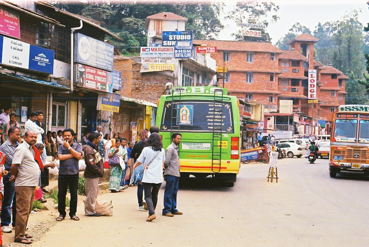 그 다음에 원래 계획했던 건 토이 트레인을 타고 차밭이 있다는 근처 마을 쿤누르로 가는 것이었는데, 인도의 여름 방학 시즌 다시 말해 휴가철인 5월이라 무척 붐벼서 표를 사기가 힘들었다. 긴 줄 끝에서 이리저리 기웃거려 보다가 결국 토이 트레인을 포기하고 대신 쿤누르까지 가는 버스를 탔다.