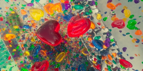 알록달록한 색색의 하트 젤리가 투둑투둑 온 세상에 떨어진다. 텔레토비나 젤라비에 나올 것 같은, 부드럽고 달콤할 것만 같은 젤리들이. 얼핏 조화롭지 않아 보이는 이 장면에서 갑자기 울컥했다. 아주 오래전부터 연못에 몸을 던져온 이들의 사랑일까, 하는 생각이 들었던 것이다.