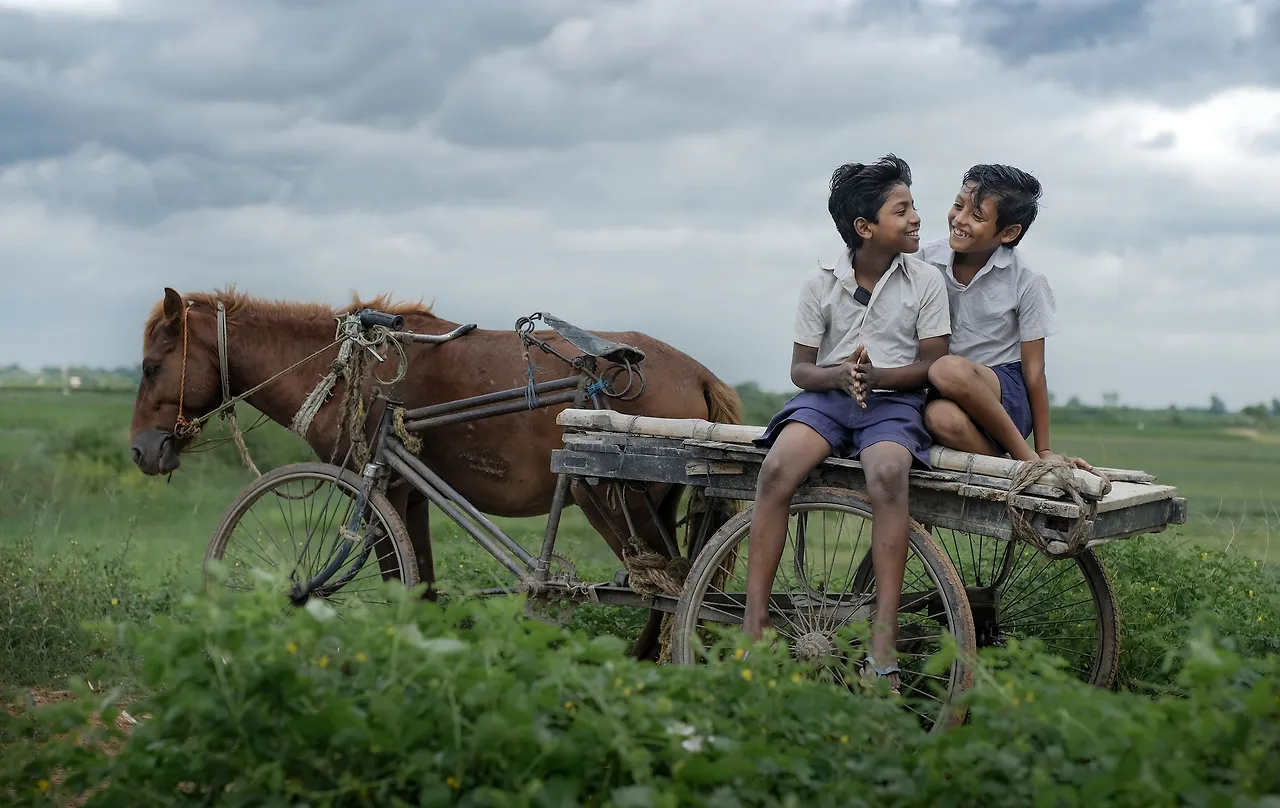 그러나 막상 <깐부>를 보면 많은 부분이 참 동화적이다. 시골에서 아이들이 어떻게 노는지를, 한참 공들여 보여준다. 마땅한 장난감이 없는 아이들이 어떻게 창의력을 발휘해 멋진 장난감을 만들어 내는지, 용돈이 마땅치 않은 아이들이 어떻게 신박한 방법으로 용돈 대용품을 마련하는지, 값싼 장난감(그중에는 '똑딱이'라고 나오는, 요즘 애들이 갖고 노는 푸쉬팝 같은 것도 있다. 애들은 동서고금 똑같은 걸까?) 하나로 얼마나 깊은 소통을 할 수 있는지... 가난하지만 잔잔한 인도의 시골 풍경에서 귀여운 아이들의 모습이 편안하게 펼쳐진다.