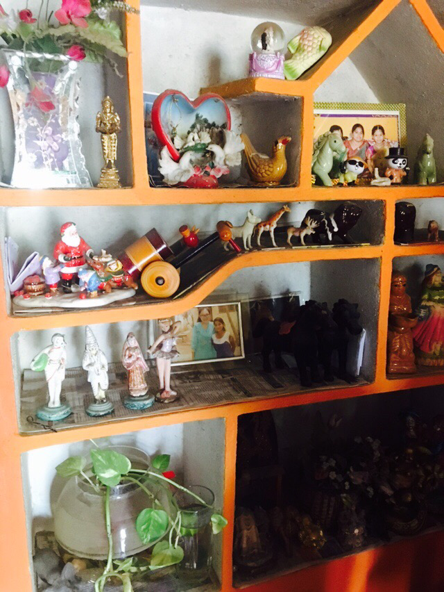 밝은 노란색과 오렌지색으로 칠해진 벽 한쪽에 있는 선반을 장난감이며 도기, 조화 등으로 오밀조밀하게도 꾸며 놓았다. R의 집은 세 식구가 칼잠이라도 잘 수 있을까 싶을 만큼 작지만 늘 깔끔하고 예쁘게 정돈되어 있다.