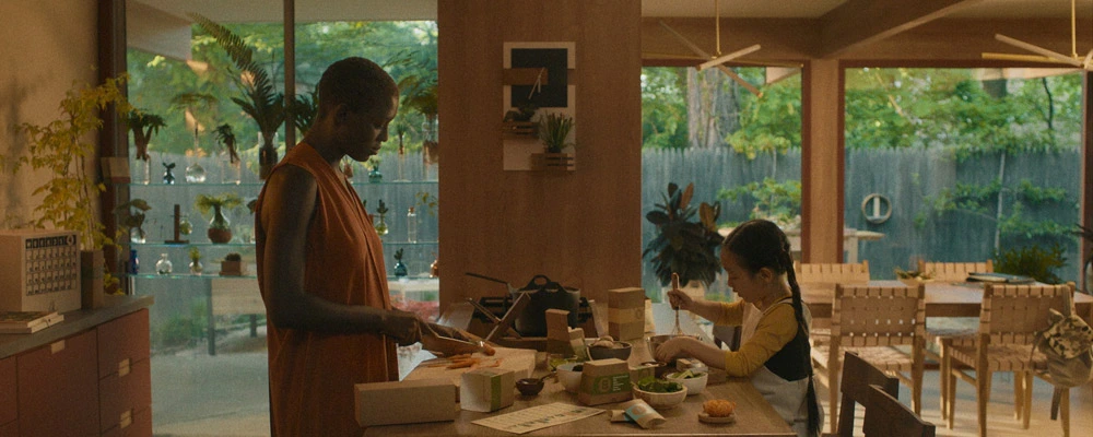 <애프터 양>은 안드로이드 '양'과 한 일가족의 이야기다. 영화는 먼 미래의 언젠가를 배경으로 하지만, 과시적이고 웅장한 기술을 바탕으로 한 세계는 아니다. 현재 '문화권' 혹은 '인종'이라고 구분되는 것들이 생활 곳곳에 아무렇게나 섞여 있어, 양의 가족도 백인 남성 제이크와 흑인 여성 카이라 두 부부가 중국계 아이 미카를 입양한 형태로 이루어져 있고, 생활 속에도 다양한 문화권의 특징들이 묻어난다. 특히 이 가족의 삶에는 차(茶)에 관심이 많은 제이크의 영향인지 특히나 '동양적'인 것들이 많이 어우러져 있다.