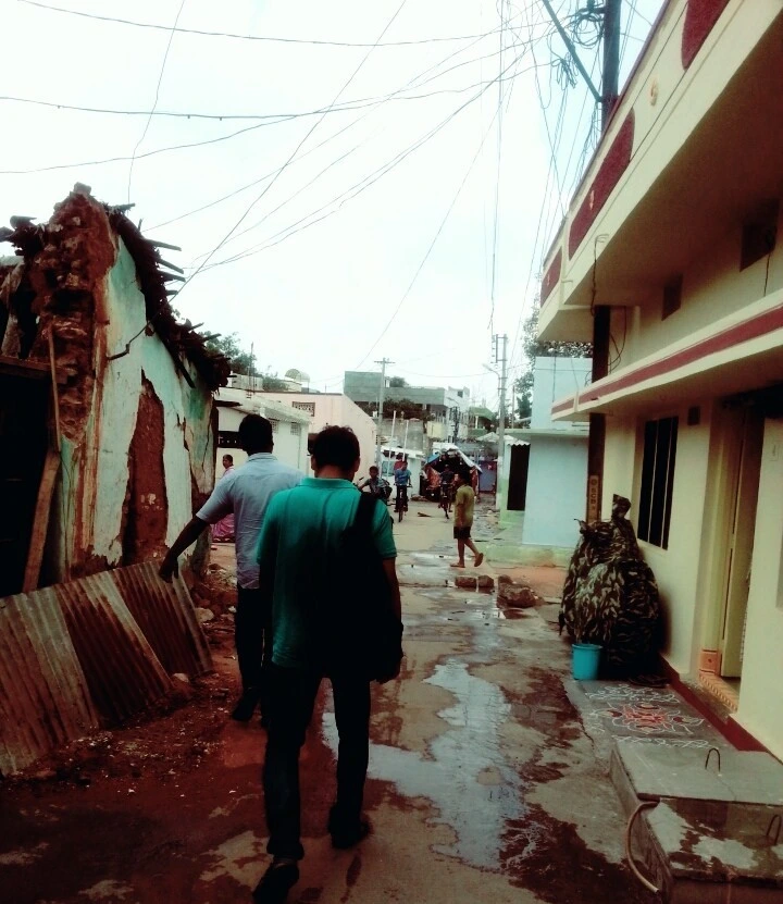 골목 어귀에 있는 힌두교 사원 앞에 차를 대고 내린다. 소 한 마리가 좁은 골목을 기어 들어가는 뒷모습을 보며 기이하다 생각한다. 그 틈바구니에서 아주머니 한 명이 호기심 어린 표정으로 낯선 외국인을 쳐다 본다. 죄 지은 것도 없건만 시선을 피해 서둘러 현지인 간사들을 따라 골목으로 들어간다.