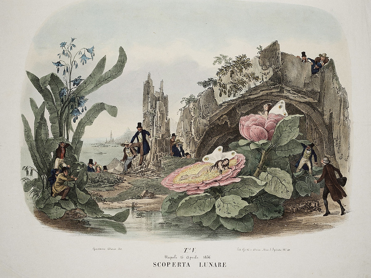 식민지에 대한 착취는 언제나 다방면으로 이루어진다. 보고 있노라면 '달을 정복'하겠다던 옛 유럽인들의 상상도는 식민지를 향한 제국주의의 탐욕과 크게 다르지 않다. 오래 전 유럽이 상상한 '달 정복'의 풍경은 이렇다. '야만인'과 '유인원'의 중간쯤 되는 존재들이 날아다니고 있고, 꽃잎 위에 여성이 자고 있으며 (와중에 망원경까지 쓰고 보고 있다), 낯선 동물들과 새들이 많다. 이들은 큰 범선을 타고 달에 날아가, '야만인'들의 목에 밧줄을 두르고 채찍질을 하고, 동물들을 사냥해 배에 주렁주렁 매달고 돌아오는 꿈을 꾼다. 나비 요정 같은 저 여성들은 어떻게 되었을까. 상상도에서조차, 전쟁은 여자의 얼굴을 하지 않았겠지. 하긴 우주비행사들도 '여성 우주인'이 있어서 안고 자면 좋겠다는 소리나 하고 있다.