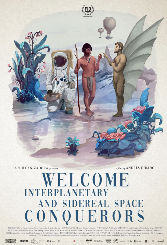 SYNOPSIS. 냉전의 긴장 속, 콜롬비아와 파나마의 국경 지대 다리엔(Darién)에서 길을 잃은 우주 비행사들이 원주민들 때문에 놀라 깊은 두려움에 휩싸인다. 그들이 목이 잘리거나 야생 식인종에게 잡아먹히게 될 거라고 예상했을까? <외계 우주 정복자 환영>은 열대 생존 훈련에 사용된 프로파간다 아카이브와 관련 영화들을 재조립해 우주 정복이라는 미션에 새겨진 식민주의적 내러티브에 도전한다.