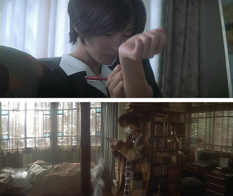 저런 편지를 쓰는 히로코의 기분은 어땠을지. 그런 걸 모르는 여자 이츠키는 찬찬히 옛 기억을 떠올려 본다. 놀림 받고 울던 날 책상을 걷어차 다른 아이들에게 불만을 표시하고 나가던 이츠키, 그러나 기어코 친구들의 부정 투표(?)로 같이 도서 위원이 되어 일하게 된 것도. 하얀 커튼 뒤에서 쏟아지는 햇살을 받으면서 책을 읽고 있는 남자 이츠키의 모습은 금방이라도 사라질 듯 위태로워 보인다. 실제로 여자 이츠키가 얼핏 사라진 것처럼 잘못 보기도 했다. 아마 내 눈에 위태로워 보이는 건 그저, 이츠키의 결말을 알기 때문이겠지. 하지만 이 장면은 그 애틋함과 상관없이 꽤 많은 곳에 풋풋한 소년 클리셰로 심심찮게 등장하게 되었다더라.
