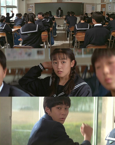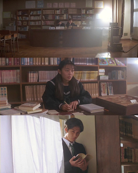 아무튼 모교에서 이츠키는 옛 은사를 만난다. 영화가 나온 1995년 즈음은 도서 카드에서 바코드로 전환이 이루어지는 시기였던 것 같다. 같은 해 나온 <귀를 기울이면>에도 도서 카드를 바코드로 전환하는 장면과, 도서 카드에서 이름을 보고 설레 하는 주인공이 나오니까. 그리고 도서부원 아이들이 여전히 남아 있는 '후지이 이츠키' 카드를 몇십 장이나 찾아내 그 카드 찾기 게임을 하고 있다는 걸 알고, 그건 내가 쓴 게 아니야, 말하다가 아이에게 한 마디 말을 듣는다. "그 카드 쓴 사람이 선배님을 무척 좋아했나 보다"라는. 그건 내 이름이 아니라고 말해보지만 전후상황 모르는 아이들이 이해할 리 없다. 꽃다운 나이 소녀들은 이미 자기들 나름의 결론을 내리고 키득거릴 뿐.