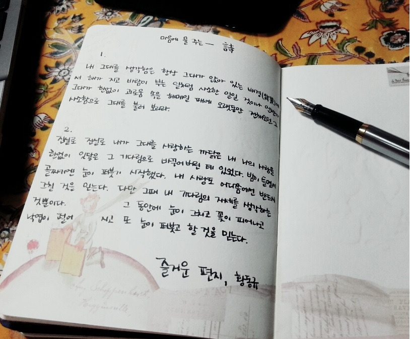 시인이 고등학교 때 연상의 여인을 사모하는 마음으로 이 시를 썼다는 이야기를 듣고 나는 충격을 받았다. 사랑은 나이와 비례하게 성장하는 것이 아님에도, 사랑도 배워야 하는 것이니 진정한 의미에서 젊은이들은 사랑할 수 없다는 릴케의 말에 고개를 끄덕인다는 게 그만 지나쳐서 꼰대 같은 마음이 내 안에 생겼던가 보다.