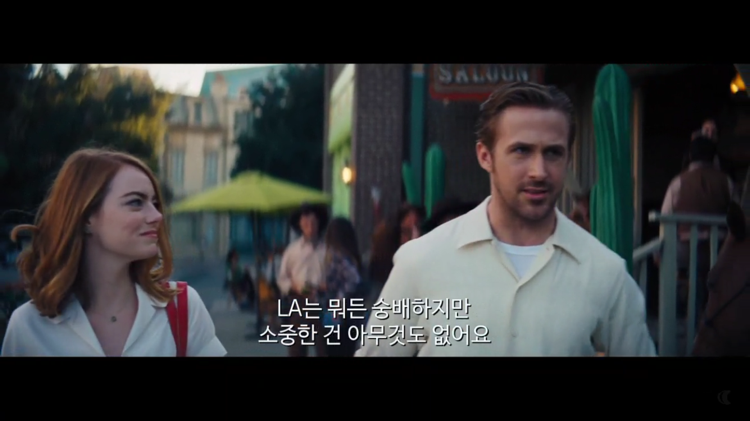 자연스럽고 고요하게 우리를 둘러싼 것들을 묵상하고 노동하는 수도원 느낌도 분명 행복이다. 그러나 자연의 색채를 하나하나 감쳐 물며 살 수 있는 행복이 현대 도시인에게는 사치에 가깝다. 소박해 보이지만, 그리고 본질만 가만히 담아 단순하지만, 그 행복이 현대 사회를 살아야 하는 우리의 삶에서 소박하다고 실감하기 어렵다. 미친 듯이 내달려야만 하는 그런 분주함은 현대 사회가 우리에게 가하는 구조적 폭력이 아닐까? 이 폭력 속에서 모두가 이효리처럼 제주도에 집 짓는 행복을 누릴 수 없다면 각자 그 날 그 날 다른 행복한 기분을 찾아내야 하지 않을까? 기분 좋아지는 색깔과 음악과 춤과 예술에 사랑, 그것들을 스포이드로 쪽쪽 뽑아내어 담은 종합선물세트 같은 영화 라라랜드로 그런 반짝이는 시간을 즐길 수 있을 것 같다.