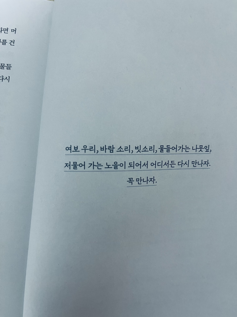 나는 이런 인사를 넣고 싶었다. 자랑스러워할 만큼 대단한 일이라는 게 아니라 그냥 그런 마음이었을 거라고 짐작했다. 결국 이 인사는 넣지 못했지만 처음으로 책을 내는 나의 첫 마음이 그렇다. 누구보다 자랑스러워할 나의 가족, 동화와 지호, 동화와 지호, 그런 마음이다. 고마운 사람들이 너무 많은데 ‘나인가?’ 생각하는 바로 당신, ‘나는 아니겠지.’ 생각하는 바로 당신도. 너 맞어. 우리가 언젠가 마음을 나눈 그 시간들이 있어서 지금의 내가 있는 거니까, 너무 고맙다. 정말 고마워.