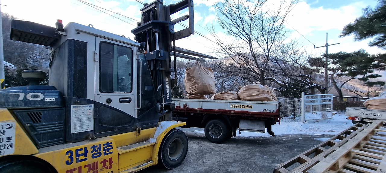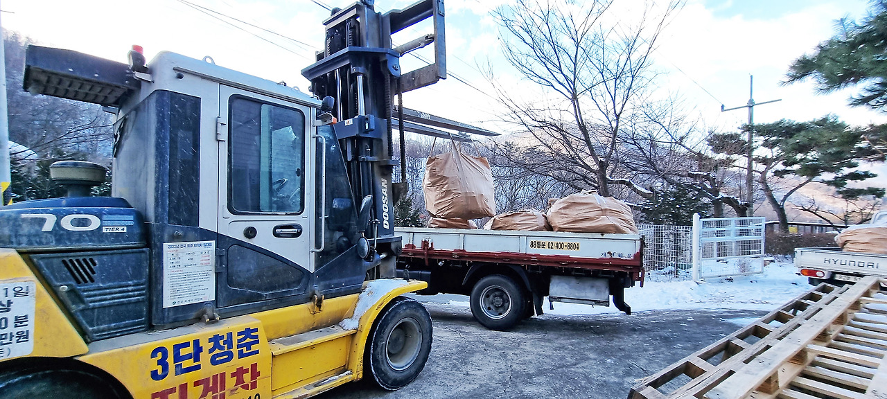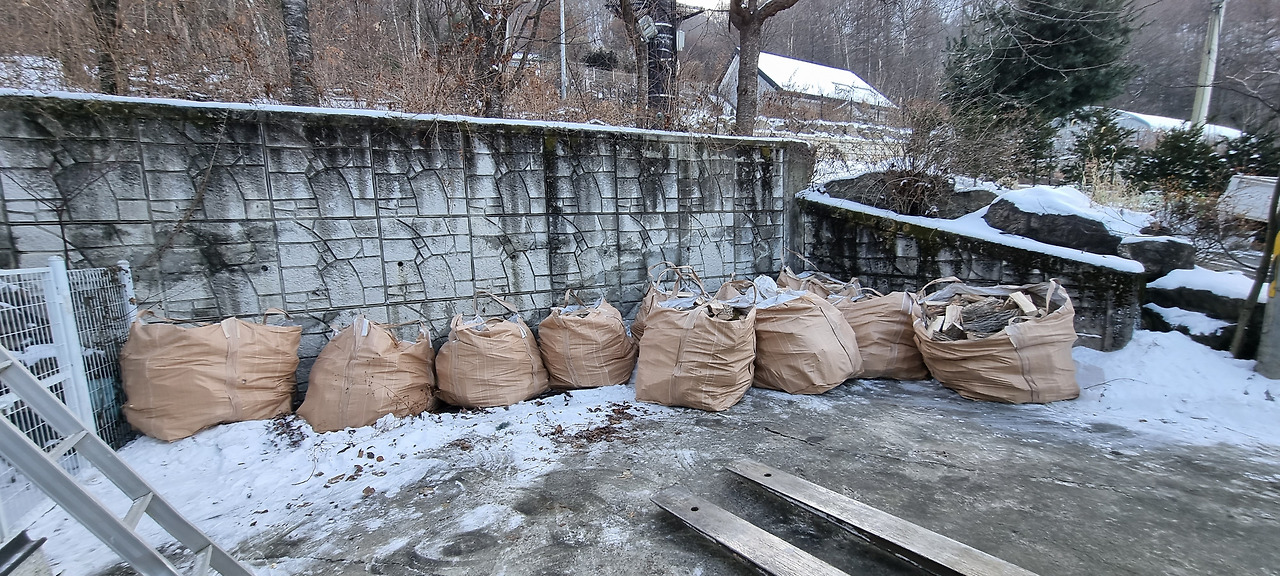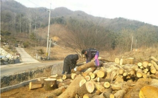 그런데 막상 장작을 구하려니 어디에서 구입해야 하는 건지 알 길이 없었다. 남편이 동네 이장님 및 지인들을 통해 물어 물어 드디어 장작을 주문할 수 있었고 마침내 나무가 도착했다.