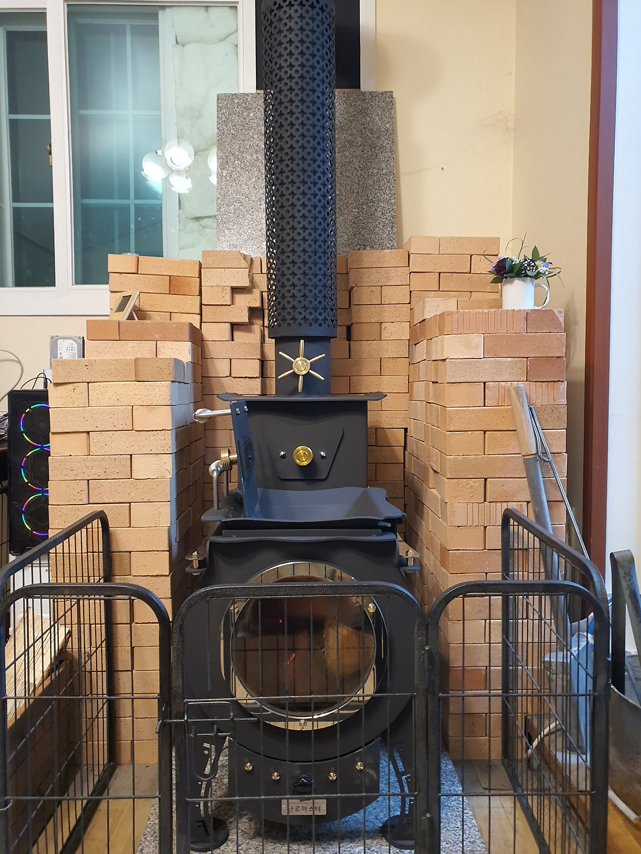 난로를 바꾸고 훨씬 따뜻한 것은 물론이고 장작이 끝까지 타서인지 재도 별로 나오지 않을뿐더러 절단목을 통째 넣고 퇴근하면 다음날 아침에 출근할 때까지 불이 살아있어서 불을 다시 피울 일이 없더라는 경험담을 듣고는 업체를 소개받아 난로를 바꾸기로 했다.