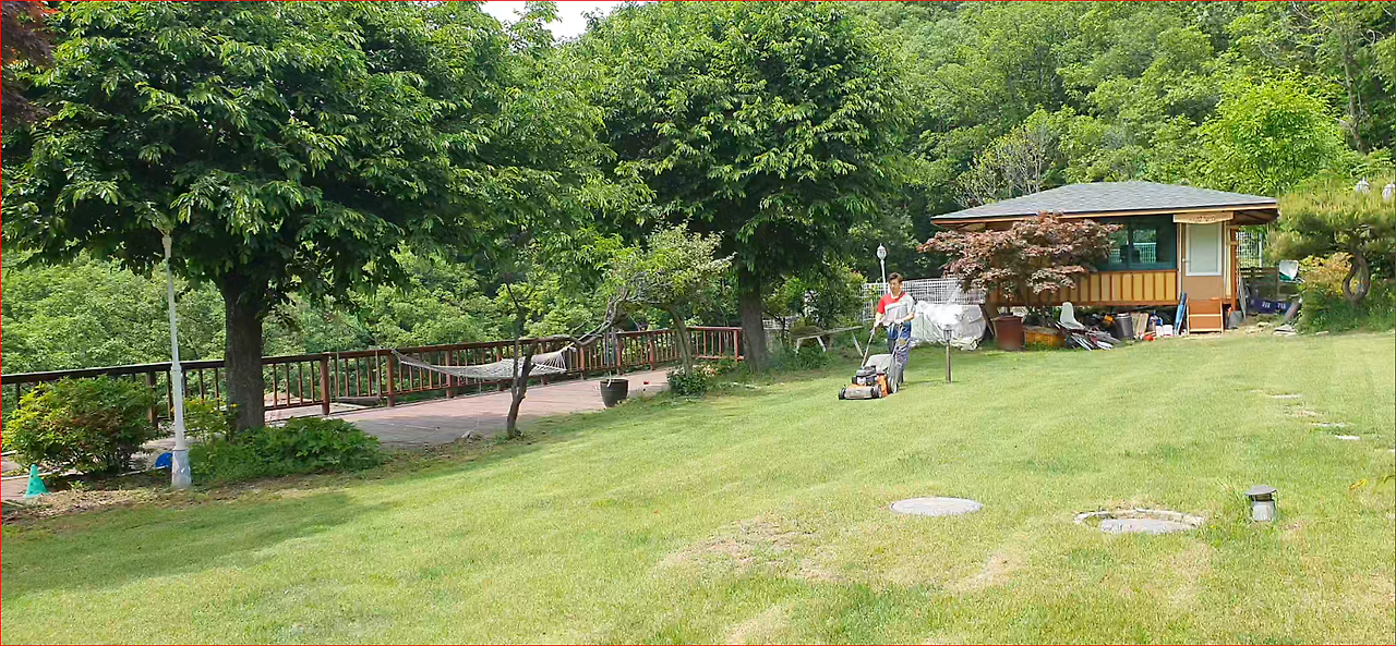 잡초와의 전쟁이 전원주택의 단점이라고들 많이 얘기한다. 하지만 마당 잔디에 풀 한 포기 없어야 하고 화단에도 풀이 없이 깨끗해야 한다는 생각을 버리면 그건 전혀 단점이 되지 않는다. 남편은 마당 잔디에 있는 풀을 하나하나 뽑기보다는 풀들이 자라서 세력이 커지기 전에 자주자주 잔디를 깎는 것으로 마당 관리를 한다.
