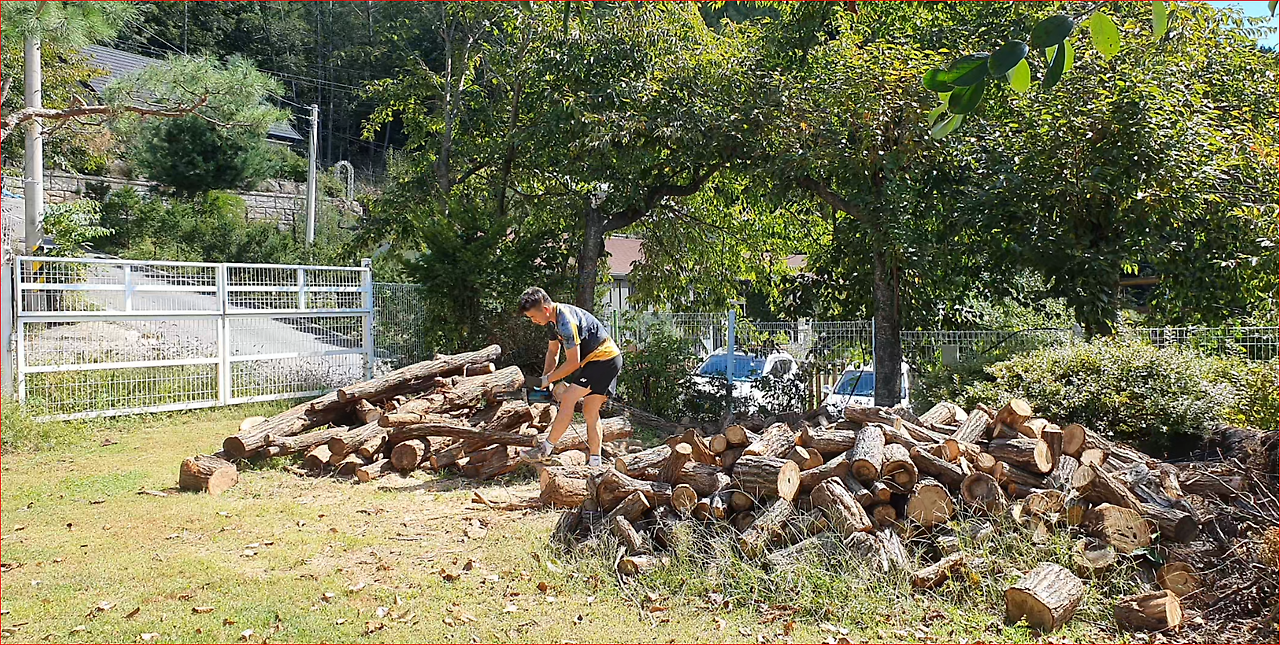 같은 금액일 때 통나무로 사는 게 제일 양이 많고 사용하기 편리한 쪼갬목일 때 제일 양이 적다. 남편과 내가 40대 때일 때는 통나무를 사서 직접 전기톱으로 자르고 도끼로 쪼개는 작업을 함께 해서 장작을 만들곤 했었다.
