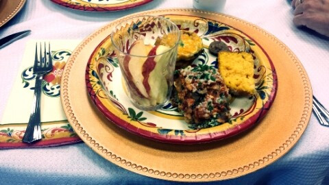 금빛 장식 접시가 분위기를 돋워 주었다.