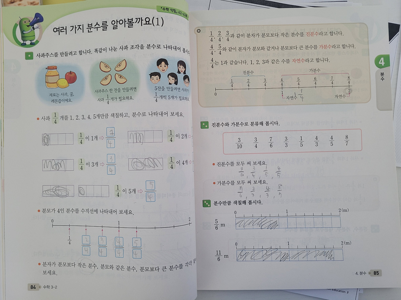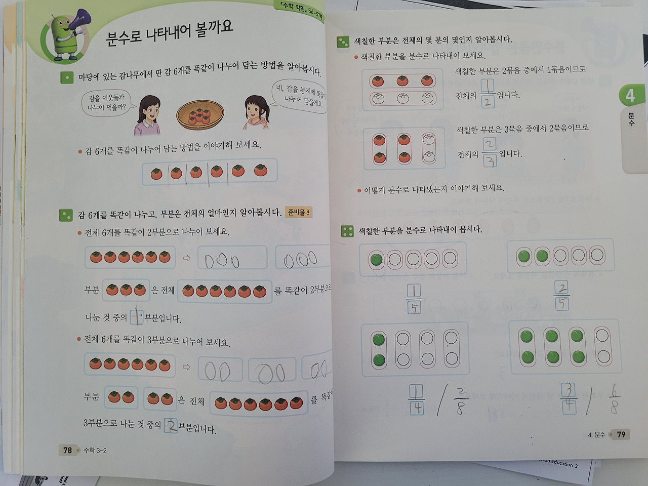 한국 초등 수학 3학년 2학기 교과서(분수)