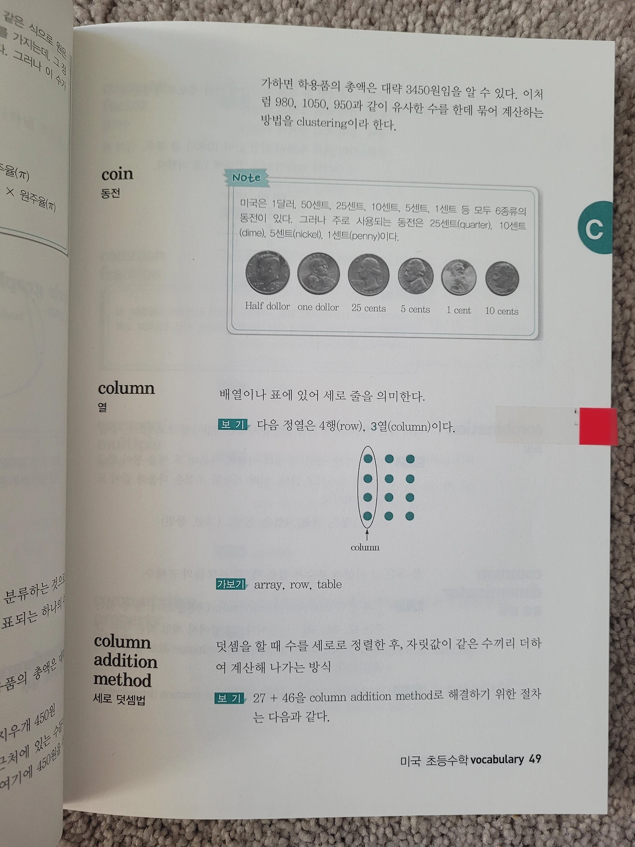 나도 사실 한국에서 한국에서 미국 초등 수학 용어 사전을 구매해서 왔지만, 공부를 시키지는 못했다.