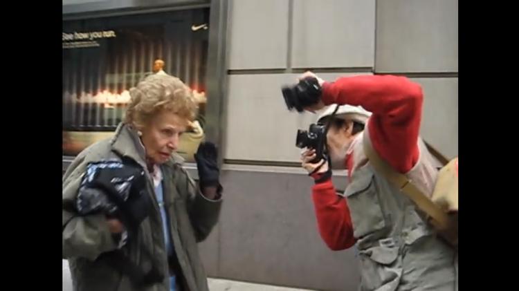 대낮에 플래시를 터뜨립니다. 브루스가 뉴욕의 거리에서 사진 작업을 할 때 사람들은 돌연 카메라 렌즈가 눈 앞에 있으니