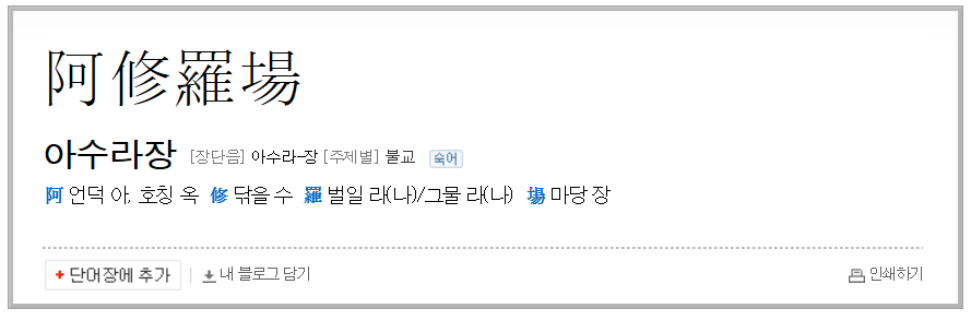 네이버 한자사전에서는 '아수라장'에 대한 뜻과 유래를 다음과 같이 설명한다.