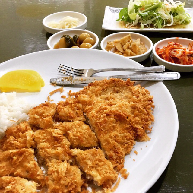 [돈까스]+ 돈까스에는 추억이 있습니다.+ 나이프로 돈까스를 자를 때면 그 추억이 속살을 보입니다. + 어린시절, 운동회를 마치고 먹었던 돈까스의 맛은 지금도 생생하게 느껴집니다. + 음식과 함께 추억을 곱씹을 수 있다는 것, 그것 참 행복합니다.