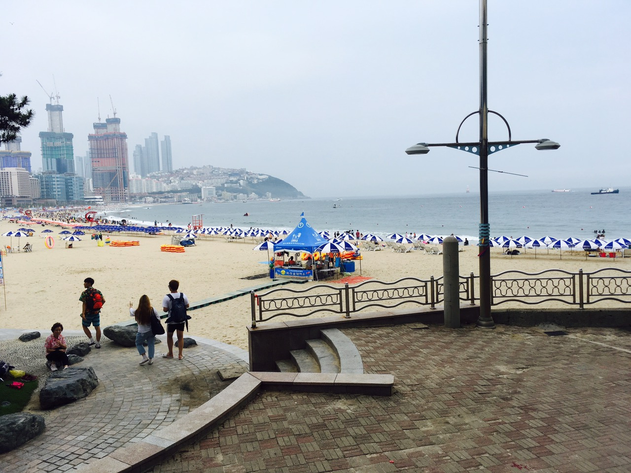 복국으로 식사를 하고 해운대 백사장을 아내와 걸었다. 장마기간이었지만 장마전선이 서울 쪽으로 올라갔을 때 우리는 부산으로 내려왔다. 그래서 부산은 흐리긴 했어도 비는 내리지 않았다. 그러나 너무 더웠다. 습한 날씨 덕에 체감 더위는 더욱 심했다. 잠깐 해변을 걸었을 뿐인데 등에 땀이 줄줄 흘렀다.