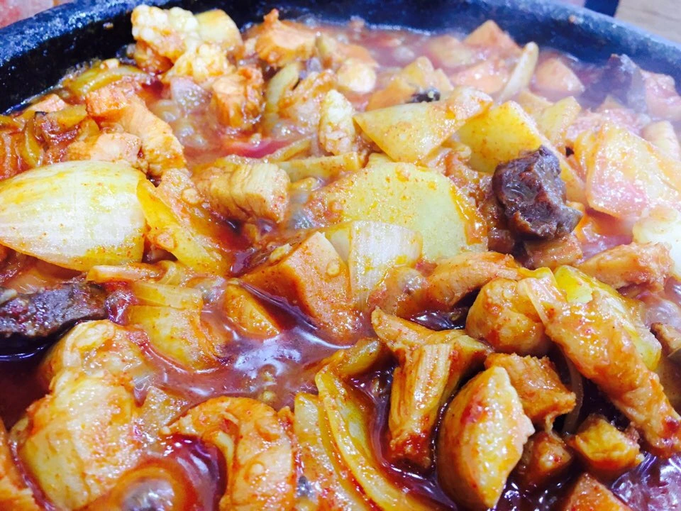 양곱창 돌판 양념은 익기까지 다소 시간이 걸렸다. 판 자체가 두꺼운 돌판이다 보니 돌판이 달궈질 때까지 시간이 걸렸다. 그러나 한 번 끓기 시작하니 내용물이 순식간에 익어버렸다. 스스로 자작하게 뿜어낸 국물 안에서 양곱창은 맛있게 익어가고 있었다.