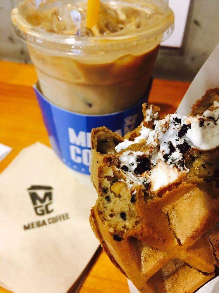 국밥을 다 먹고 밖으로 나오니 비가 제법 쏟아졌다. 부랴부랴 원래 가고자 했던 카페를 찾아갔으나 폐업을 했는지 보이지 않았다. 그러다가 눈 앞에 보인 카페, 달콤한 와플 메뉴가 한가득인 카페였다.