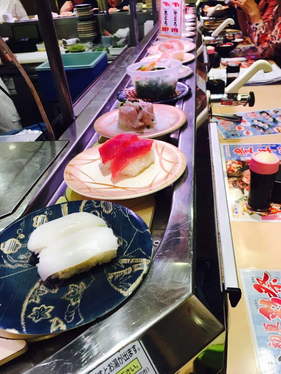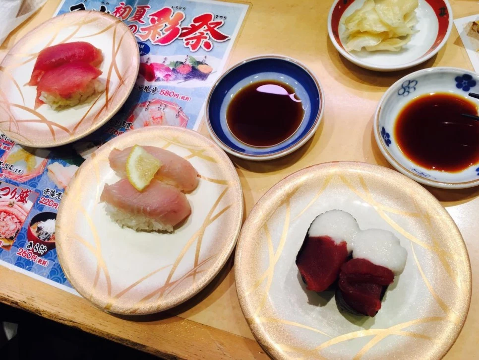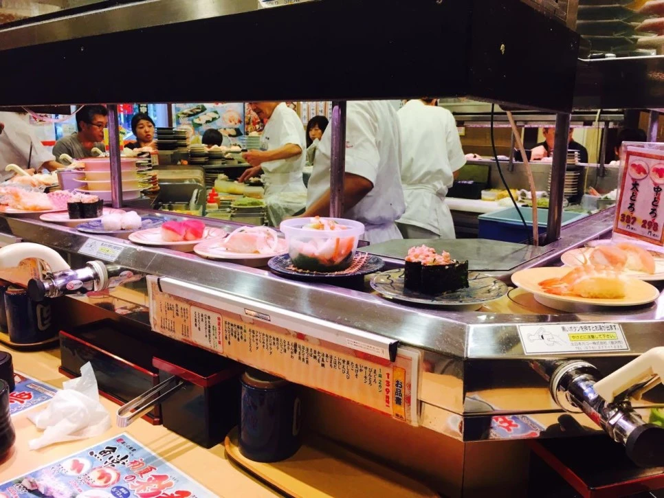 우선 도쿄 스가모역 앞의 회전스시집을 방문했습니다. 이 집은 아내가 일본 블로그를 검색해본 결과 역 근처에서 제법 괜찮다고 추천된 회전스시 전문점이었습니다. 매장의 분위기는 활력이 있었고, 서민적인 느낌이 물씬 느껴졌습니다.