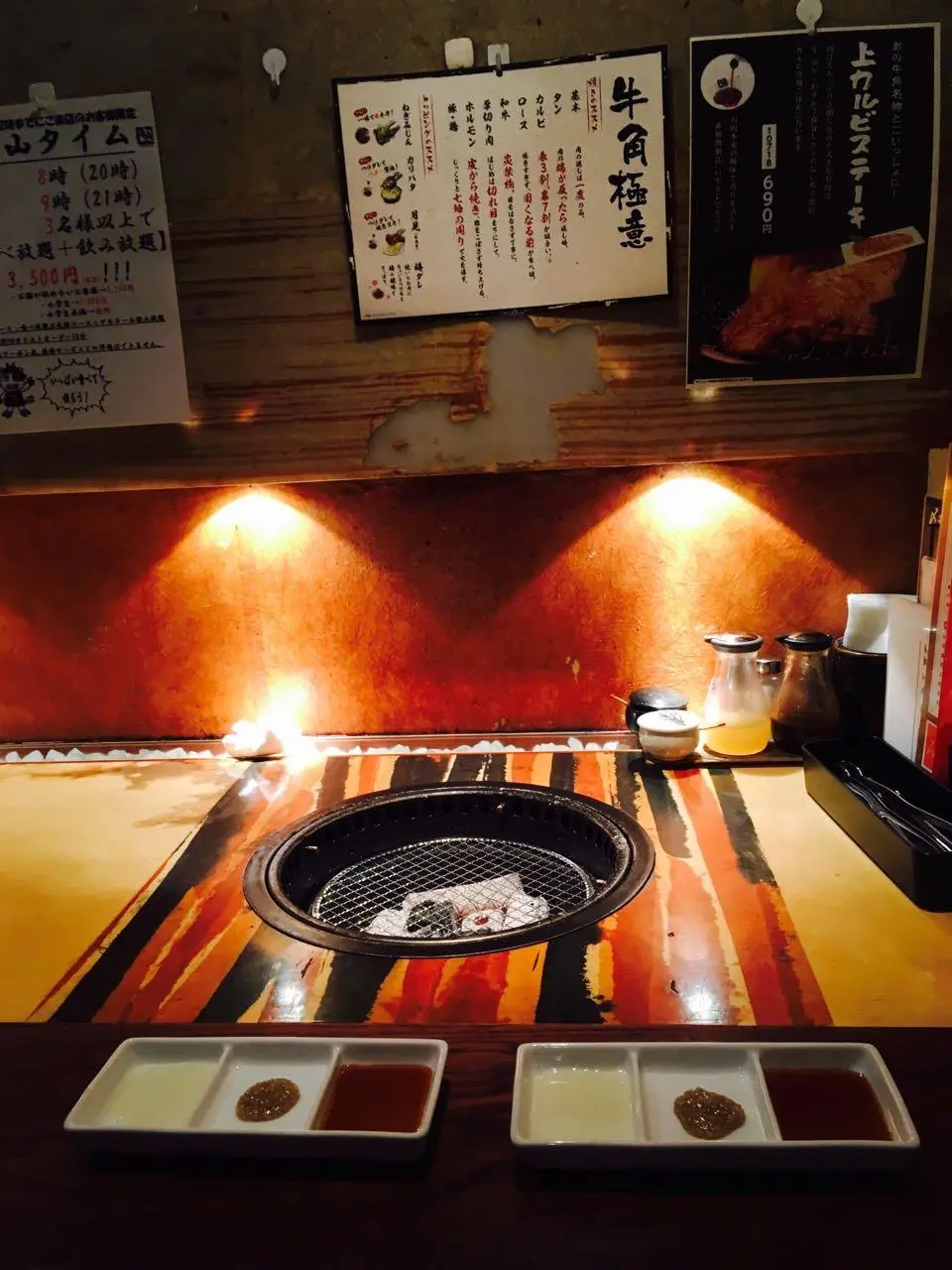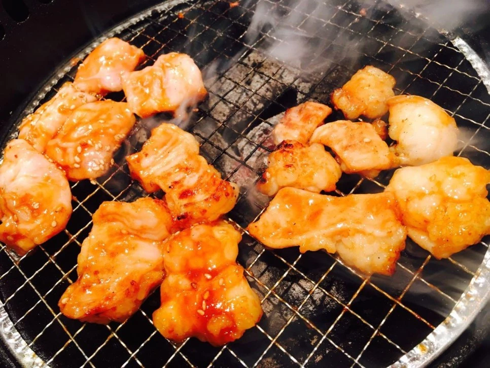 호르몬을 주문하니 양념이 된 소 대창과 돼지 막창을 각각 가져다주었습니다. 기름과 양념이 뚝뚝 떨어지는 고깃덩어리들을 불판 위에 올리니 연기가 많이 올라왔습니다. 공기는 매캐했으나 조명에 비친 연기가 연출한 분위기는 황홀했습니다. 이곳의 분위기 속에 녹아있는 동안만큼은 도쿄의 빡빡한 삶에 시달리던 일본인의 시름도 사라질 듯하였습니다.