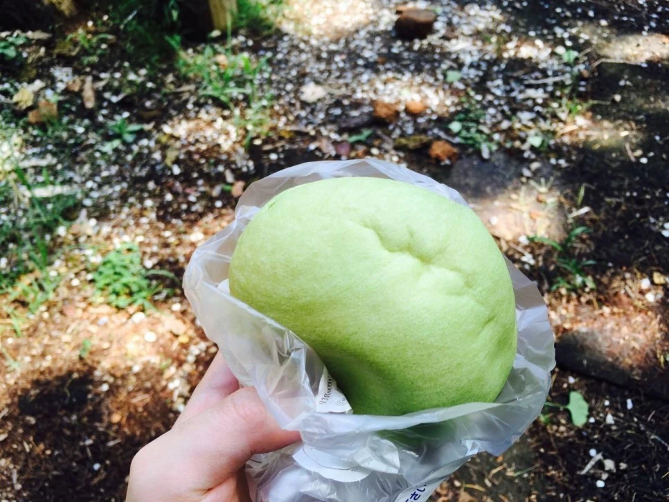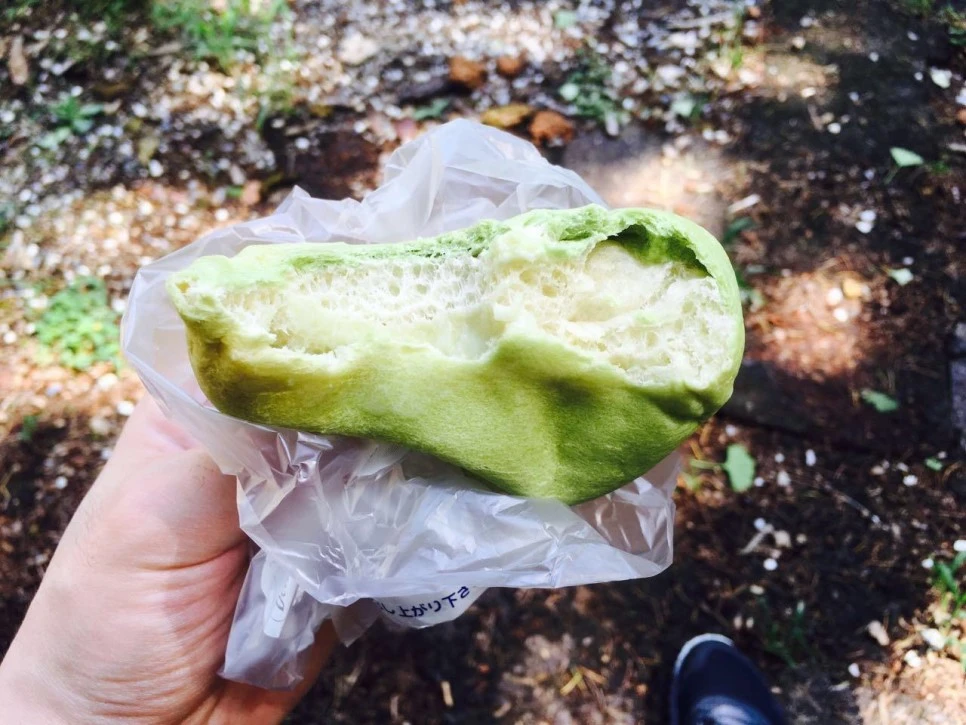 아침식사를 마친 우리는 스가모역에 있는 빵집에서 '멜론 빵'을 샀습니다. 도쿄대 캠퍼스를 구경하다가 쉴 때 먹을 간식을 산 것이었습니다. 그러나 처음의 계획과는 다르게 도쿄대에 도착하자마자 사온 빵을 벤치에 앉아 먹었습니다. 그 이유는 초록색 찐빵 같은 멜론 빵의 맛이 너무나 궁금했기 때문입니다.
