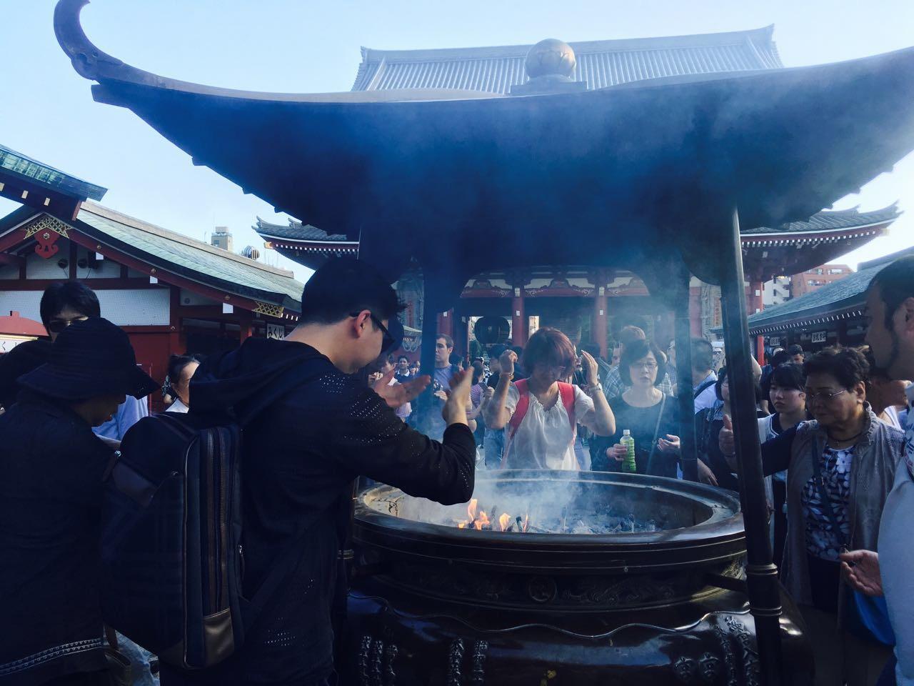 아내는 대학시절 장모님과 이곳을 방문하였다. 장모님의 도쿄 여행을 가이드했던 아내는 여기서 향로의 연기를 머리와 몸에 쐬며 자신과 가족의 건강과 안녕을 기원하였다. 나 또한 그녀처럼 이곳에서 가족의 건강과 안녕을 기원하였다. 지금 이곳에 존재하는 우리와 우리가 세상에 존재할 수 있도록 해 준 부모님을 생각하며, 지금과 내일의 안녕과 모두의 행복을 기원하였다.