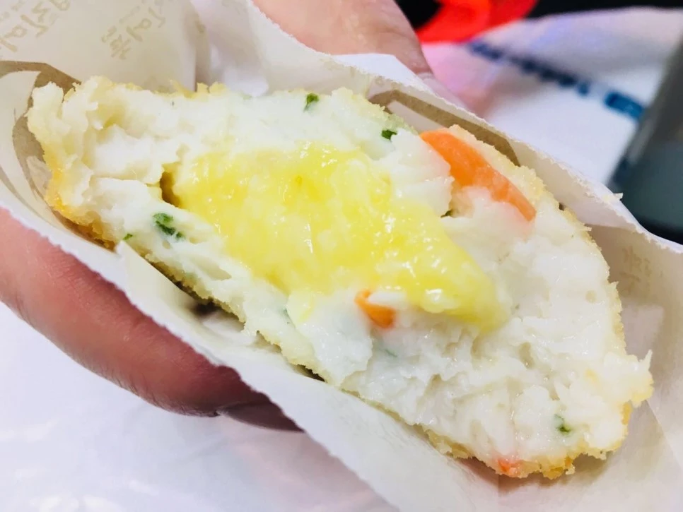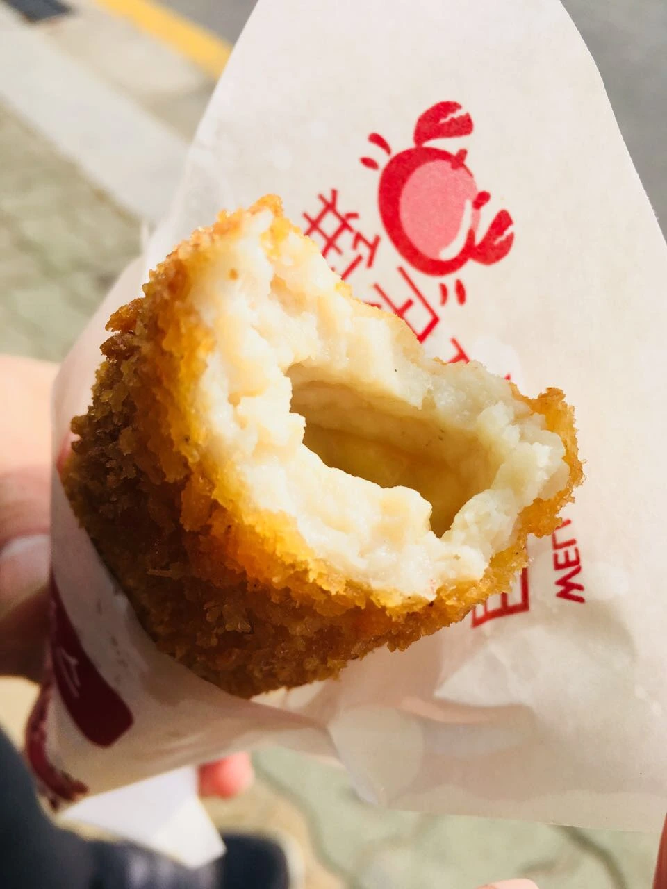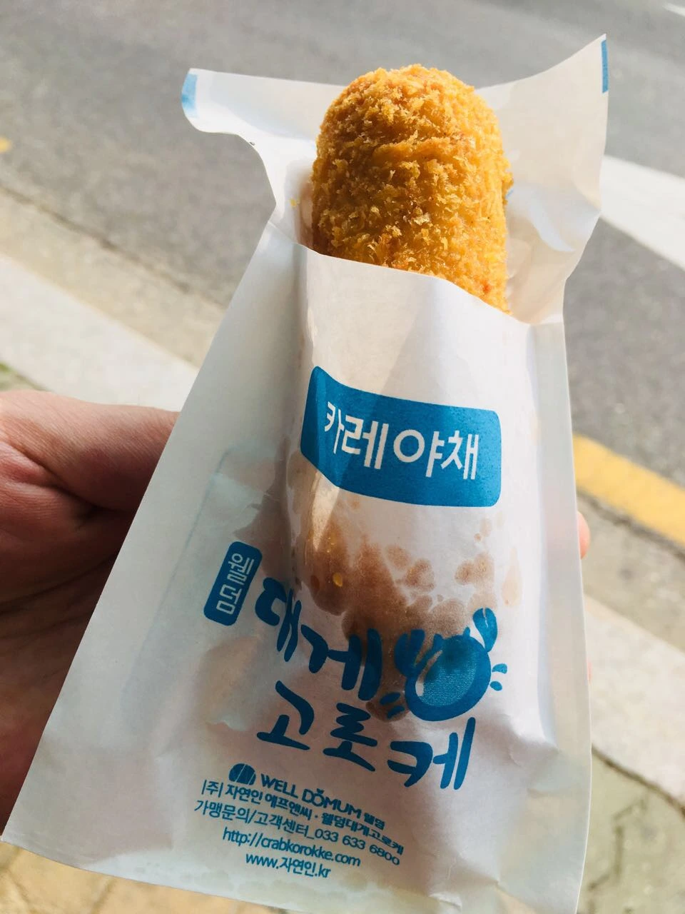 속초 앞바다에서 잡아 올린 싱싱한 붉은 대게(홍게)는 영덕대게 못지않은 맛을 자랑하면서도 가격이 저렴하여 부담 없이 먹을 수 있다. 바로 그 속초 홍게로 만든 고로케는 바삭하고 쫀득한 식감과 함께 환상적인 맛을 선사한다. 고로케 안에 포함된 소스(카레야채와 크림소스)의 맛은 자극적이지 않으면서도 바삭하고 쫀득한 고로케 살과는 궁합이 잘 맞는다.
