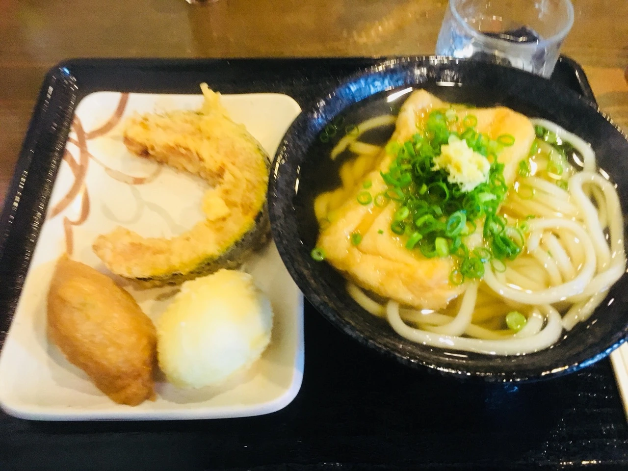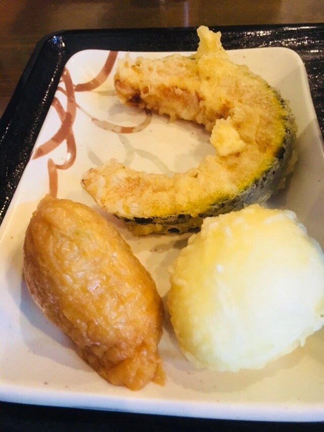 아내는 특별한 토핑 없이 카케우동으로 식사를 하였고, 나는 큰 유부를 얹은 카케우동에 단호박과 반숙계란 튀김 그리고 유부초밥을 곁들여 먹었습니다. 카케우동은 삶은 우동면을 찬물에 헹궈 쫄깃한 식감을 살린 면에 따뜻한 다시 국물을 부어먹는 우동으로 국물과 조화된 우동의 참맛을 느끼기에 딱 좋은 메뉴였습니다.