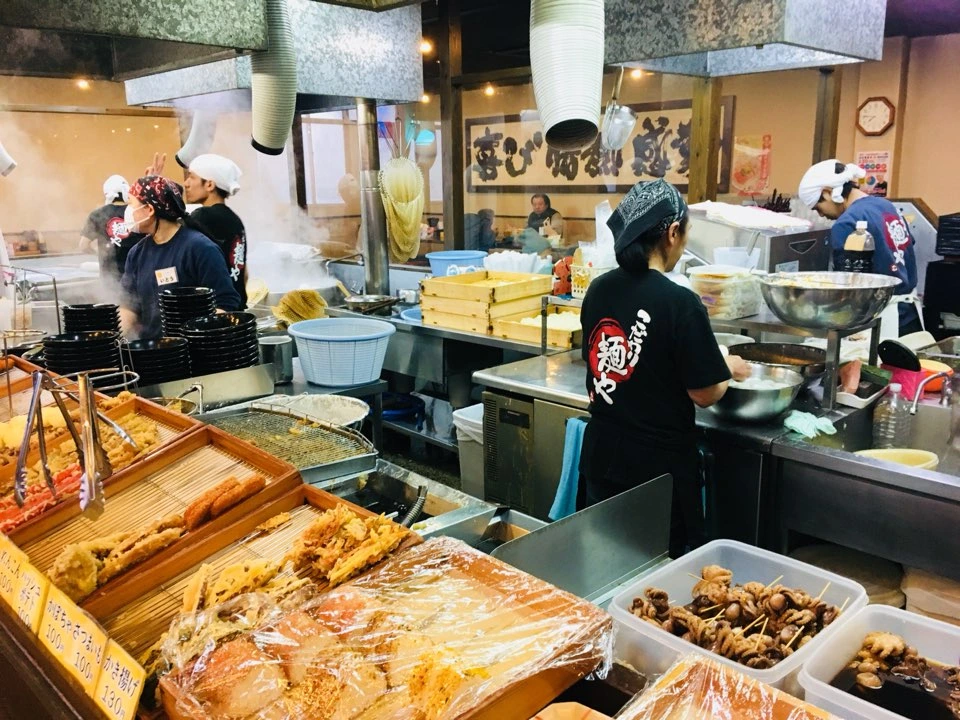 가격에 따라 우동면의 양과 조리방법을 선택할 수 있었고, 자신의 기호에 맞추어서 먹고 싶은데로 토핑을 자유롭게 선택할 수 있었습니다. 진열된 각종 튀김과 주먹밥 등을 지나가다 보면 모두 먹고 싶은 충동이 들 정도로 음식들은 맛있어 보였습니다.