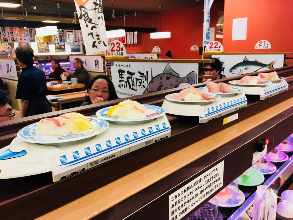 먹고 싶은 초밥을 주문하면 신칸센 열차를 모방한 배달차로 앉아 있는 좌석까지 순식간에 배달해 주었습니다. 바쁘게 움직이는 열차의 모습만큼이나 활기가 넘치는 매장의 분위기는 식욕을 더욱 돋아주었습니다.