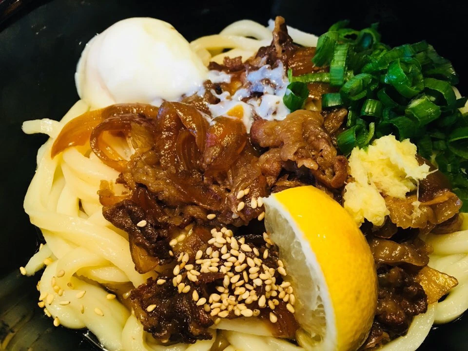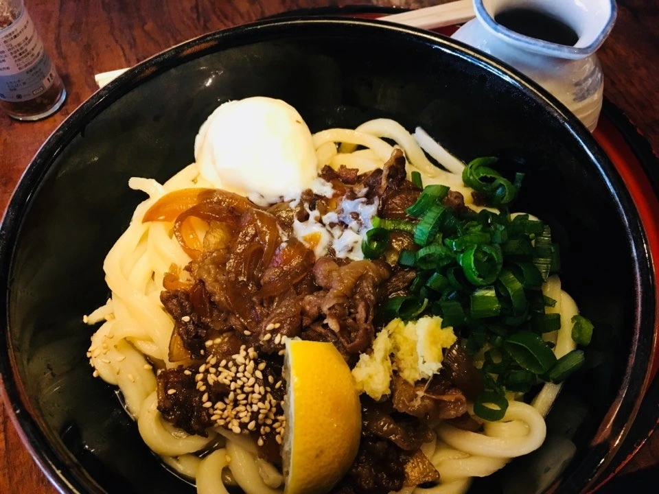 붓카케 우동은 간장소스가 포함된 국물을 부어먹는 우동입니다. 아무래도 국물 양이 적고, 뜨거운 국물이 아니다 보니 우동면의 쫄깃함을 제대로 즐길 수 있는 우동입니다. 아울러 이 집의 소고기붓카케우동은 카가와에서 올리브를 먹고 자란 소고기를 토핑으로 올린 우동입니다. 고기가 육질이 부드러워 입속에서 사르르 녹아버립니다.