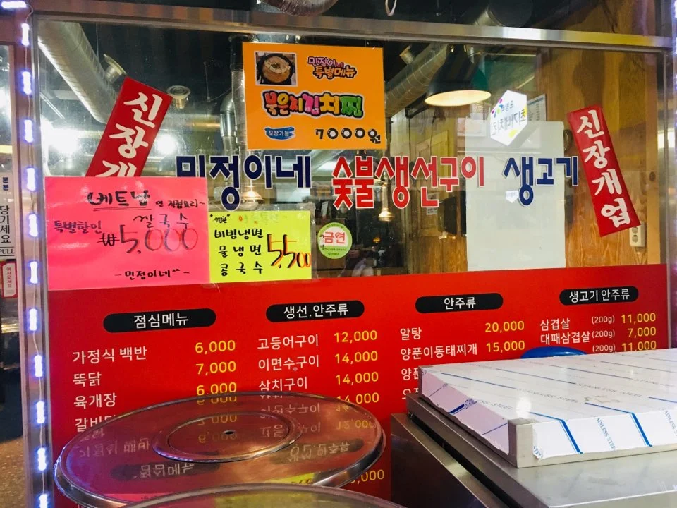 포방터시장은 전체적으로 아기자기한 맛이 있었다. 상점들의 간판까지도 오버스럽게 크지 않아 귀여웠다. 시장 자체도 작아서 시장 전체를 돌아보는데 그리 많은 시간이 소요되지도 않았다. 빠르게 TV에 나왔던 쭈꾸미집, 홍탁집, 막창집을 살펴볼 수 있었다.