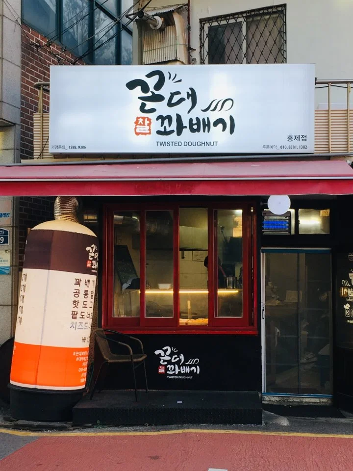 민정이네 백반집에서의 식사를 마치고, 후식으로 "꼰대찰꽈배기"의 도너츠들을 먹었다. 이 집에는 꽈배기와 같이 우리가 흔히 접하던 메뉴도 있었고, 독특한 메뉴도 있었는데 우리는 이 집에서 처음 보는 독특한 메뉴들을 주문해 보았다.