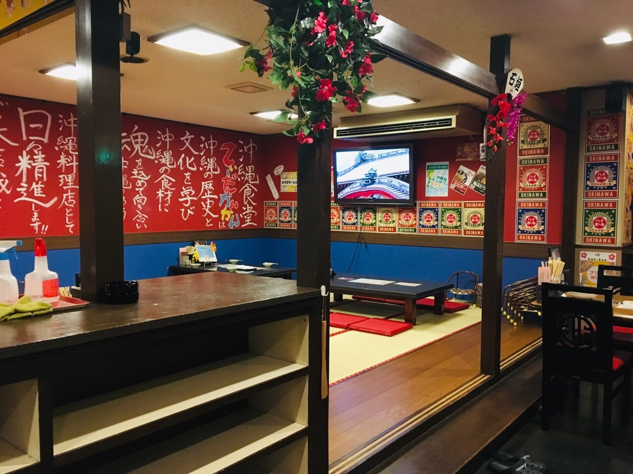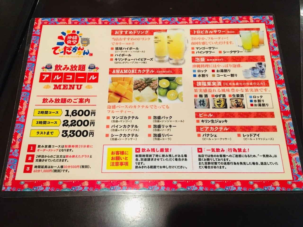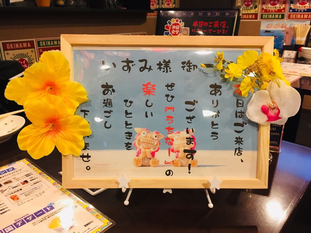 가게의 내부는 오키나와 느낌을 물씬 풍기면서도 따뜻한 분위기였습니다. 연말이라 예약된 좌석들이 제법 있었는데 미리 예약한 우리 가족은 가게의 중심부에 있는 비교적 넓은 테이블로 안내되었습니다.