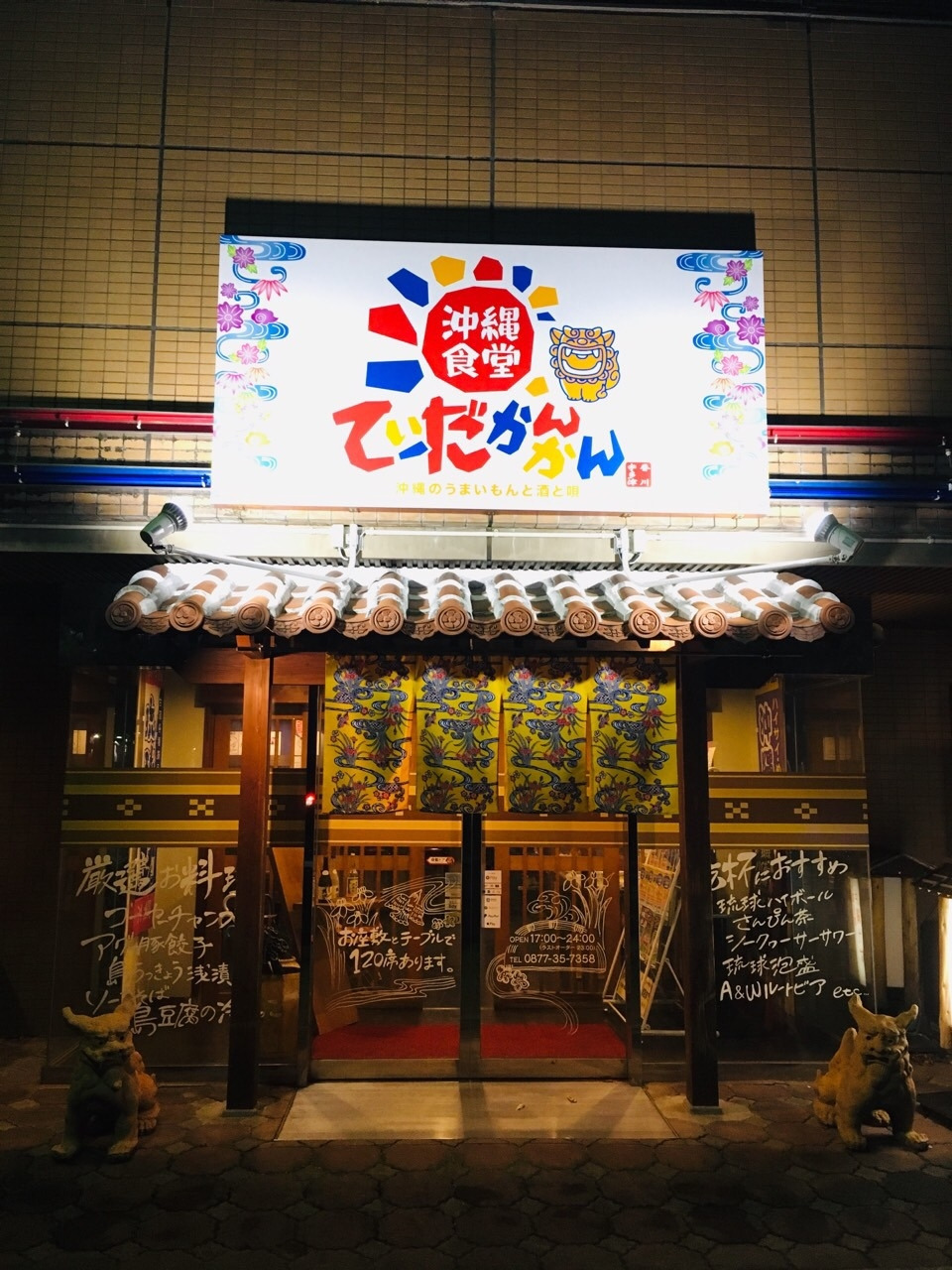 식당의 입구에서부터 이곳이 오키나와 음식점임을 강력하게 알려주고 있습니다. 입구의 양옆에 보이는 시이사아(シーサー, 오키나와[沖縄]에서 액막이로서 지붕 사방에 붙여 놓는 옹기로 된 사자상)가 우리 가족의 입장을 환영하고 있습니다.