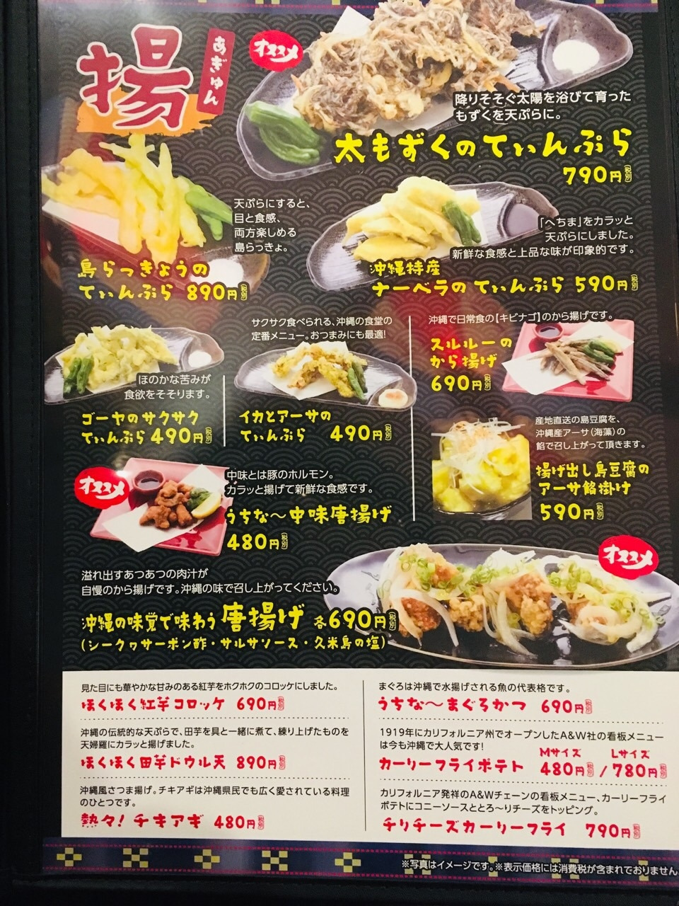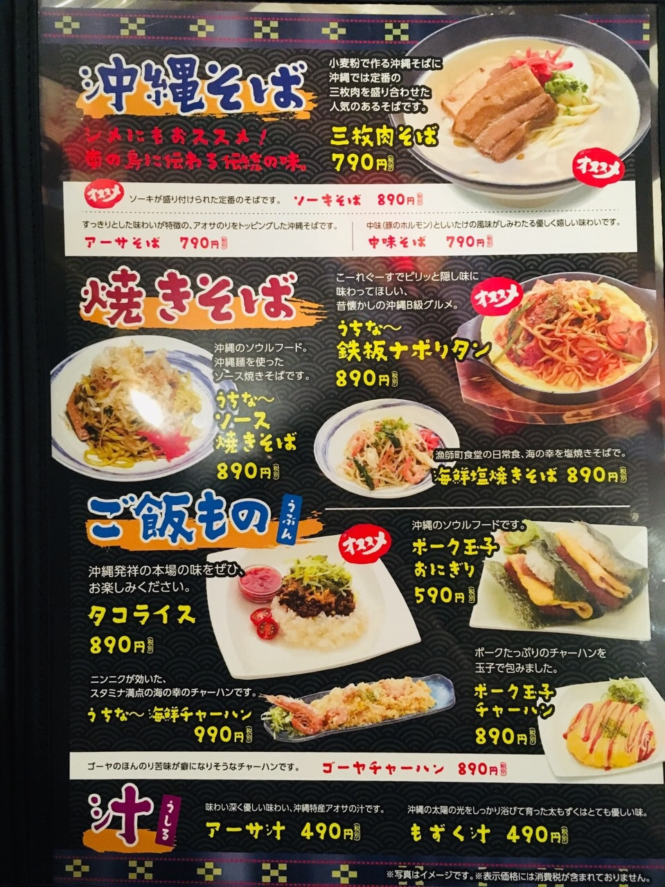 메뉴에는 오키나와를 대표하는 음료와 음식들이 즐비했습니다. 우리 가족은 각각 음료 한 잔씩을 주문했고, 먹고 싶은 음식들을 차례로 주문했습니다.