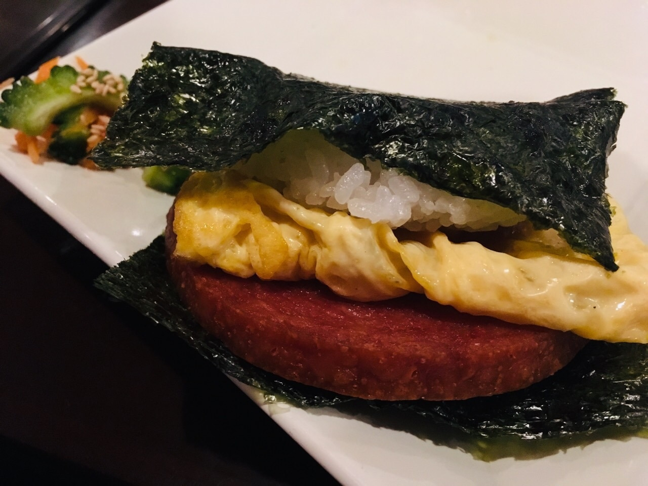 "포크 계란 오니기리"는 이러한 오키나와 스타일의 대표적인 요리였습니다. 큼직한 스팸햄이 들어간 주먹밥은 일본의 다른 지역에서는 맛볼 수 없는 오키나와만의 독특한 색채를 확실하게 느낄 수 있는 맛이었습니다.