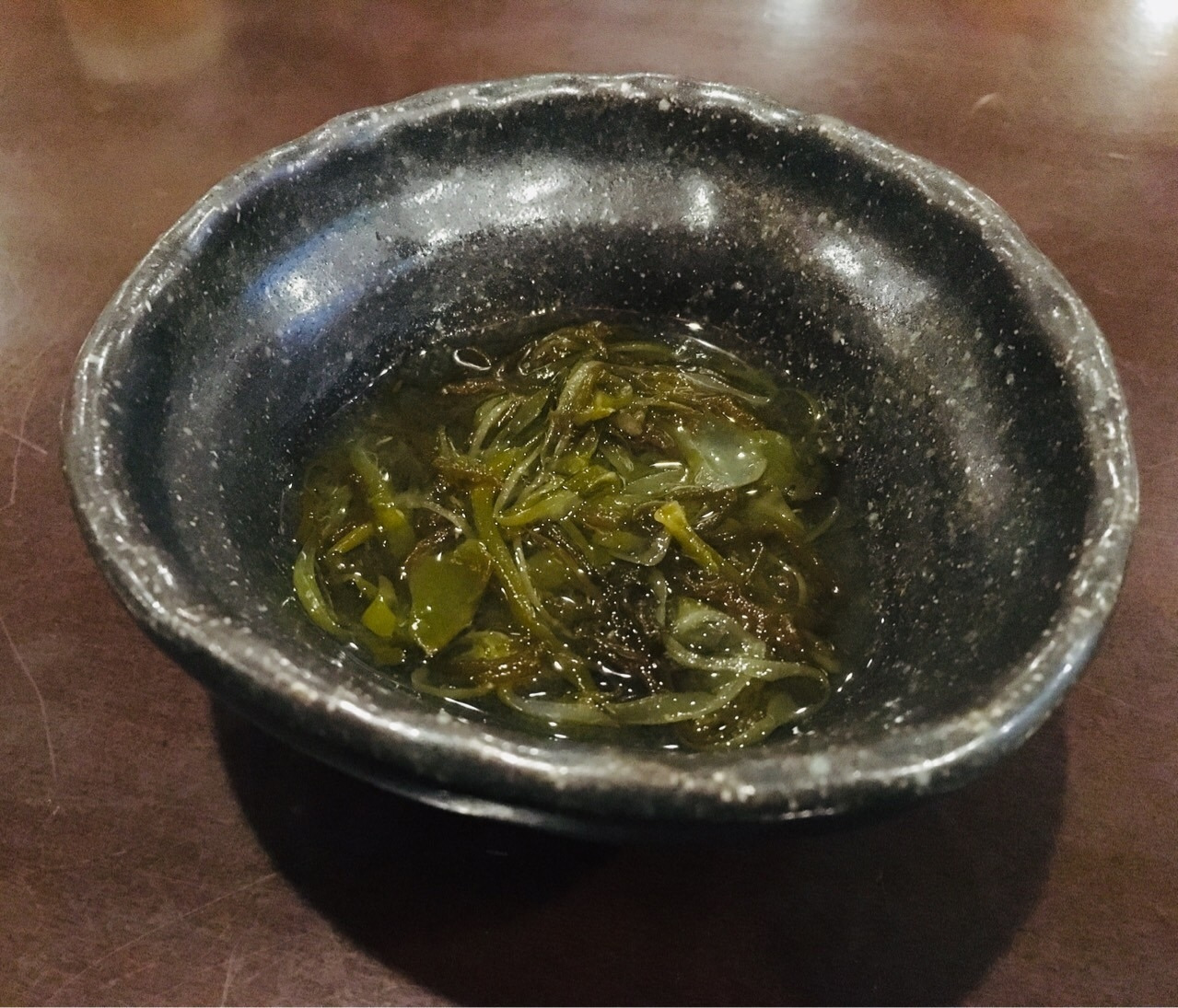 식전 음식으로 "모즈쿠"가 나왔습니다. 모즈쿠는 해초인데 오키나와뿐만이 아니라 일본 전역에서 먹는 음식입니다.